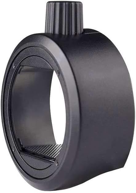The S-R1 adapter slides onto rectangular flash heads to provide a round magnetic mounting point. Gridded rubber mats on the inside surface of the adapter provide scratch-free grip, and a knurled knob on top helps tighten the adapter around flashes of different sizes.
