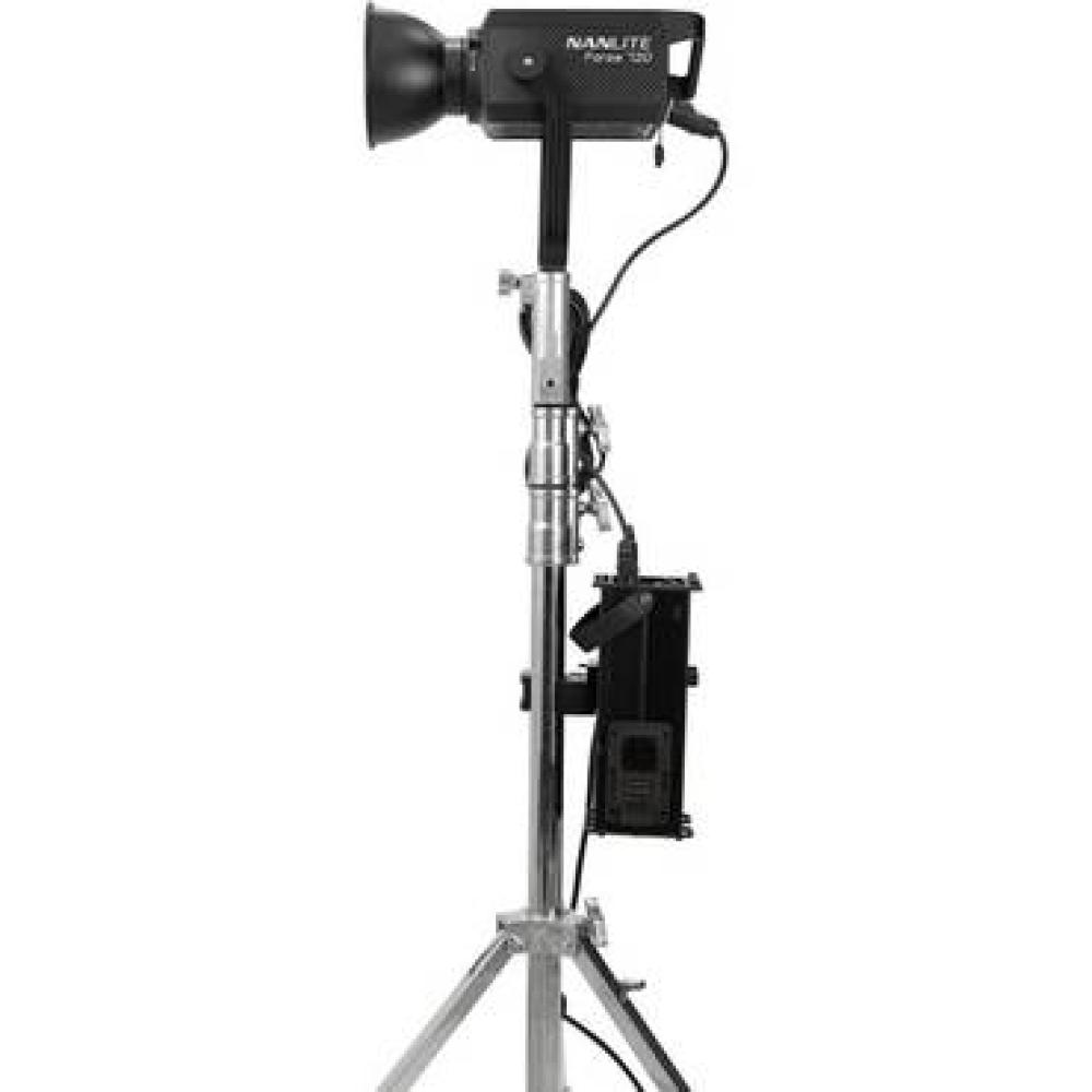 The Forza 720 can run on a standard AC outlet anywhere in the world, with an AC input range of 100 to 240 VAC. It can also operate in locations without AC power available by using two 14.8V or 26V V-mount batteries, available separately.