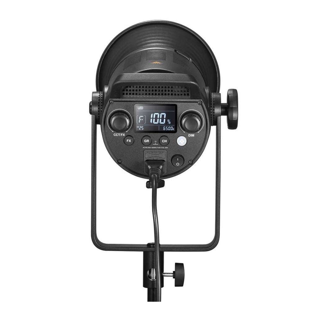 There are nine built-in special effects including Flash 1, Flash 2, Storm 1, Storm 2, TV, Broken Bulb, Fire, and Fireworks. The light comes with a reflector, a frosted diffusion cover, and a remote control (two AA batteries purchased separately). The light has a Bowens front accessory mount for Godox modifiers and also those from the many manufacturers that use this popular mount. The light is ready for woldwide use via its 100 to 240 VAV power supply.