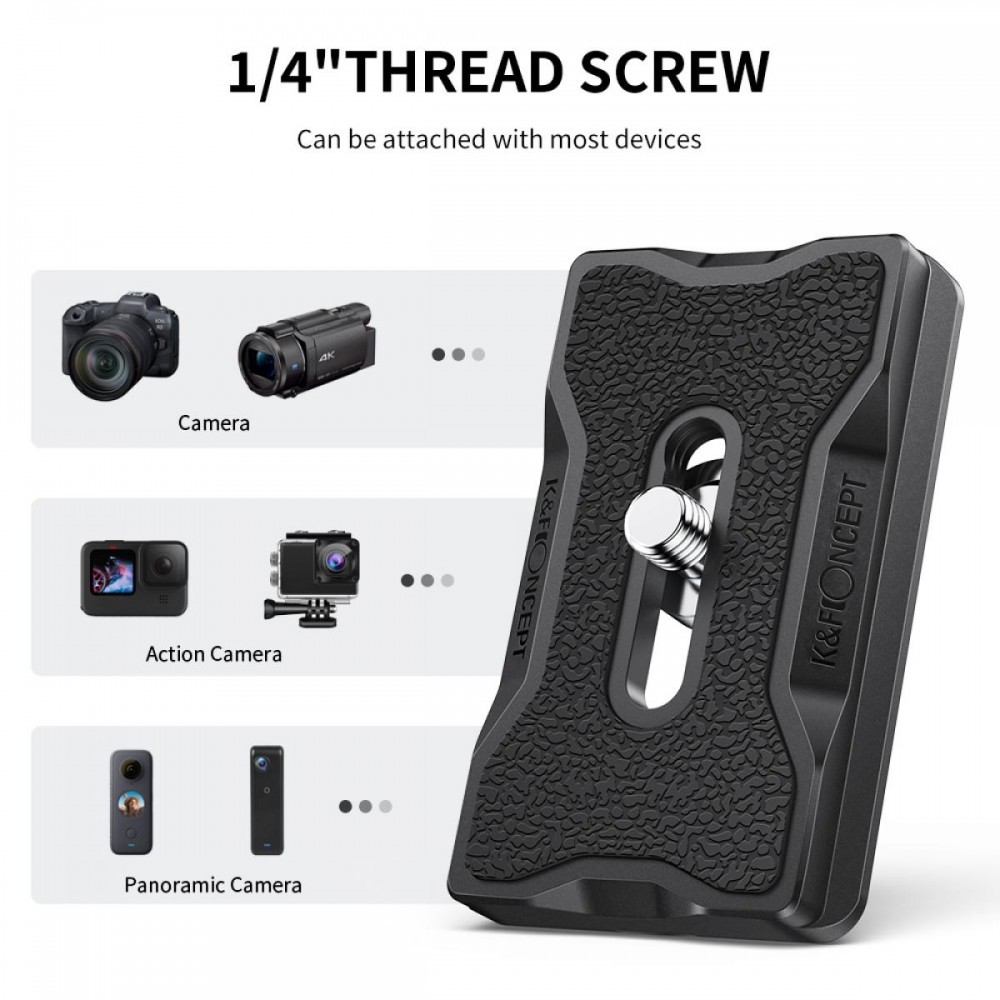 * Larger rubber surface: the rubber coating on the quick release plate has a large contact surface to increase friction, improve grip and prevent camera from falling off.